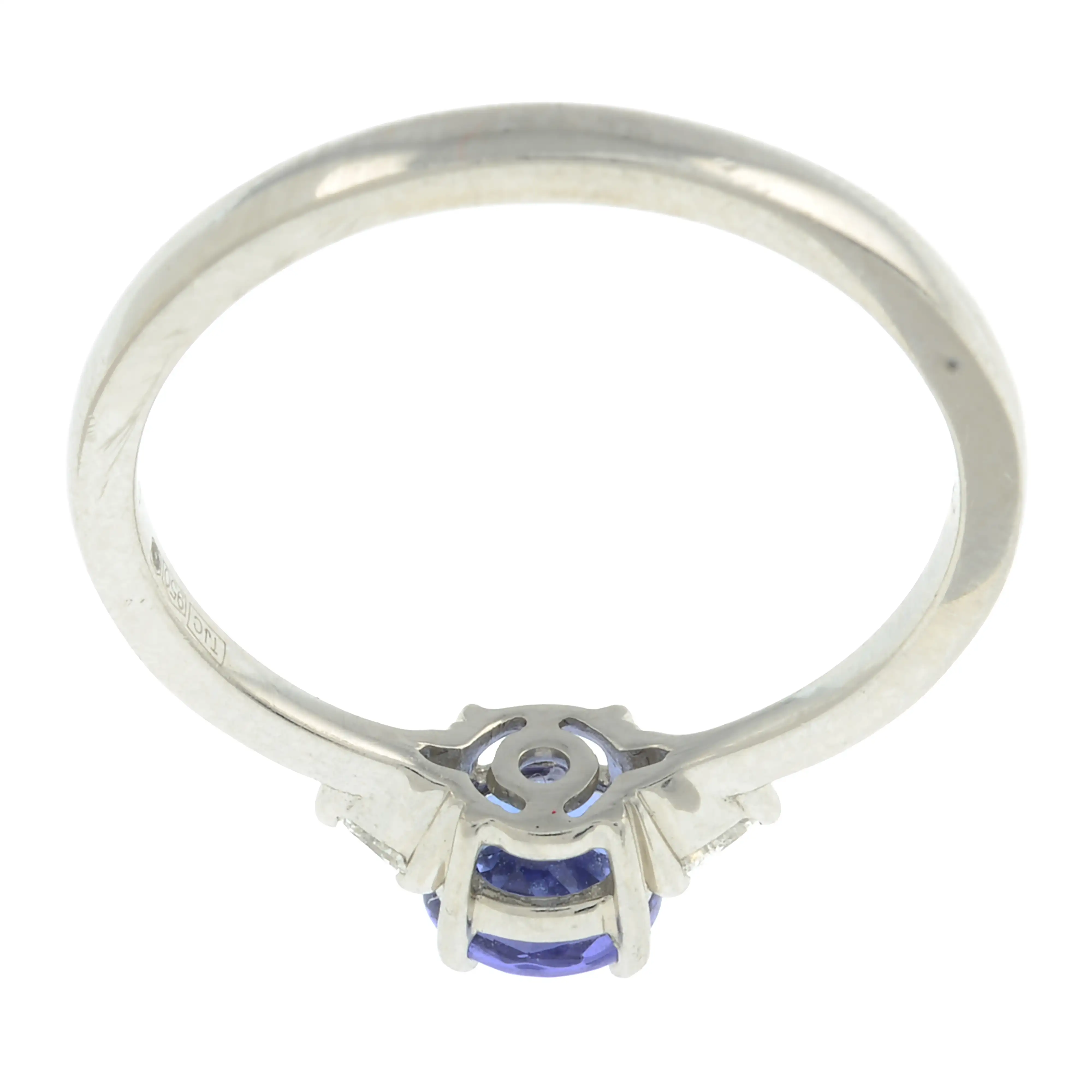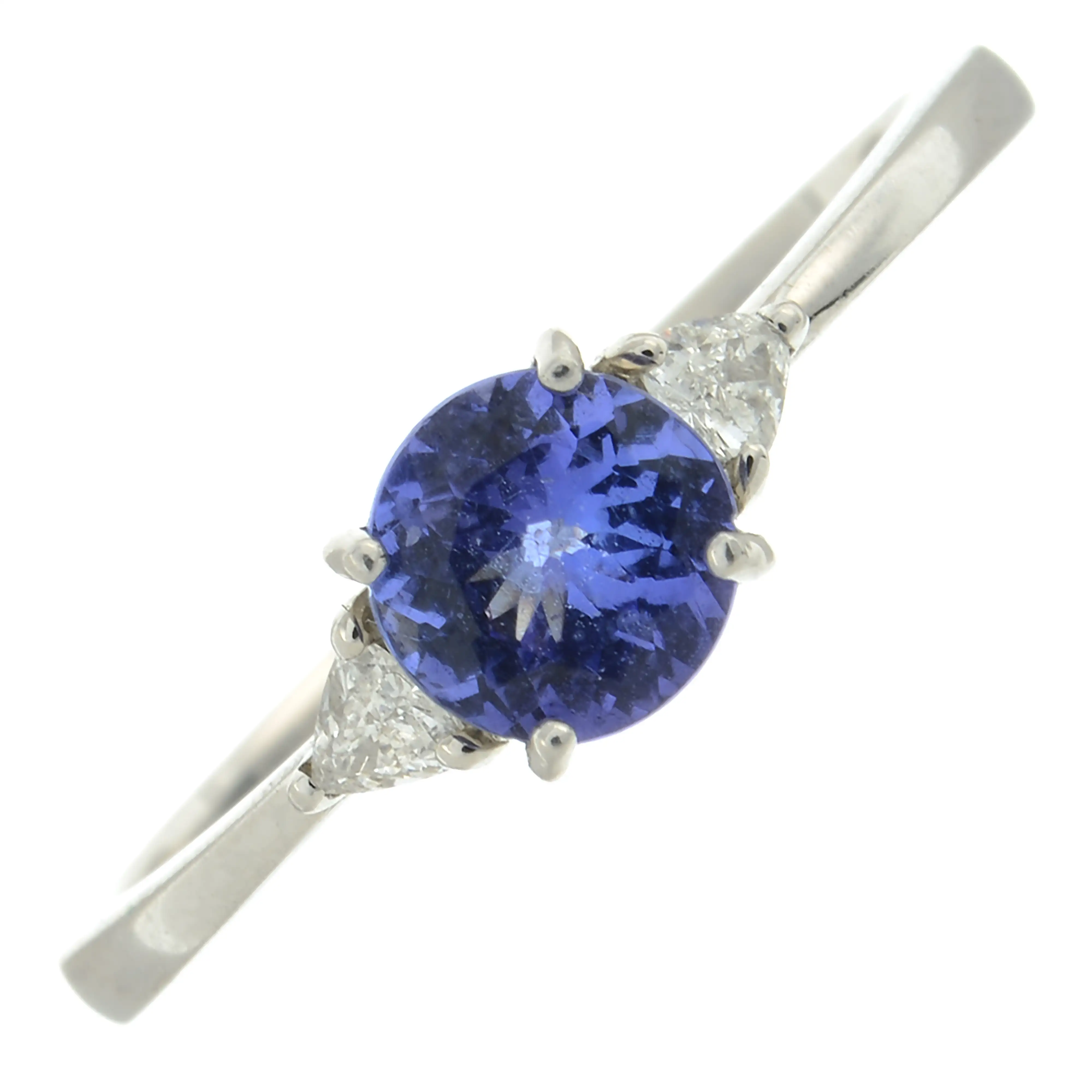 Tanzanite appears medium slightly purplish-blue, well saturated.