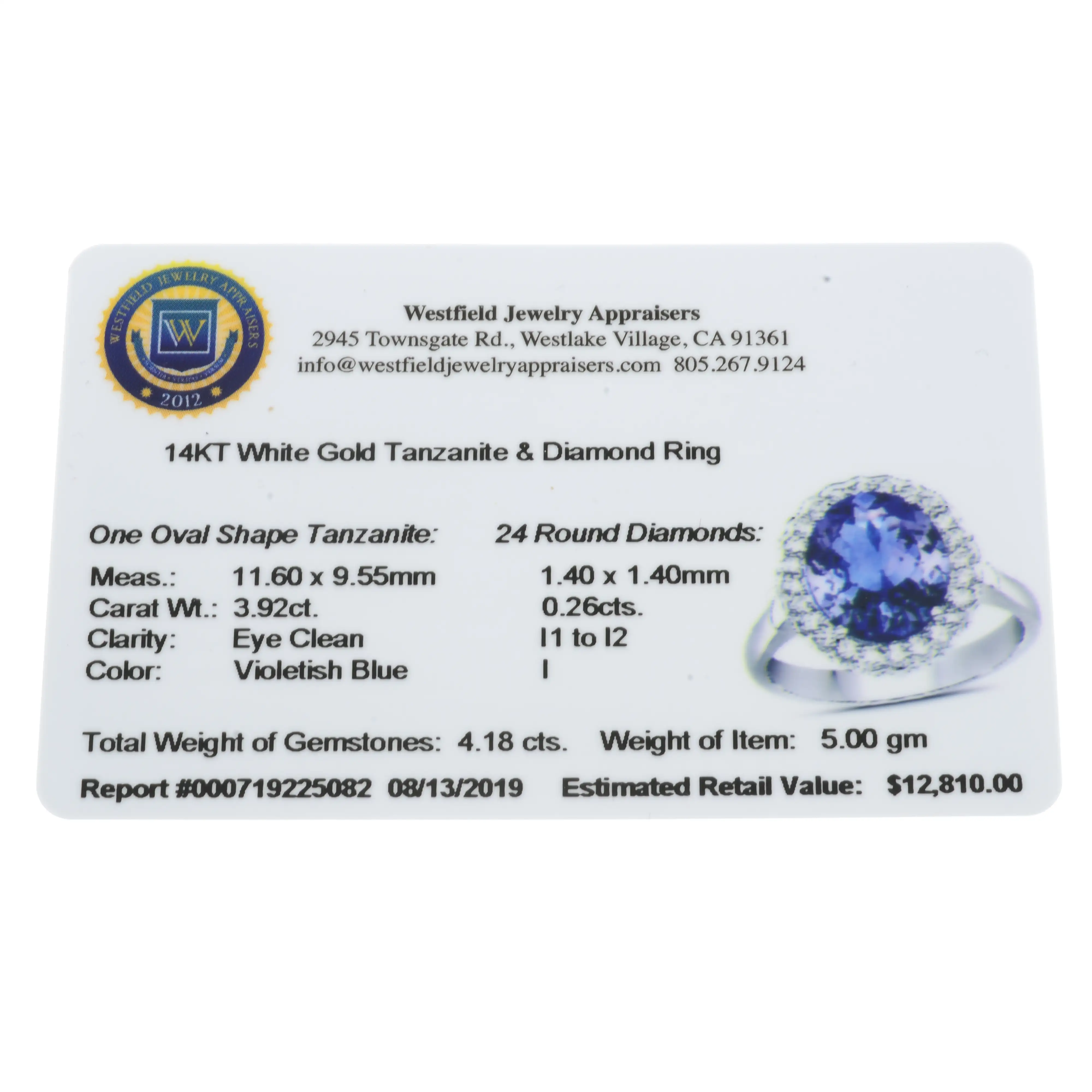 Total carat weight: Estimated total diamond weight 0.25ct. Tanzanite weight 3.92ct, stamped to band.