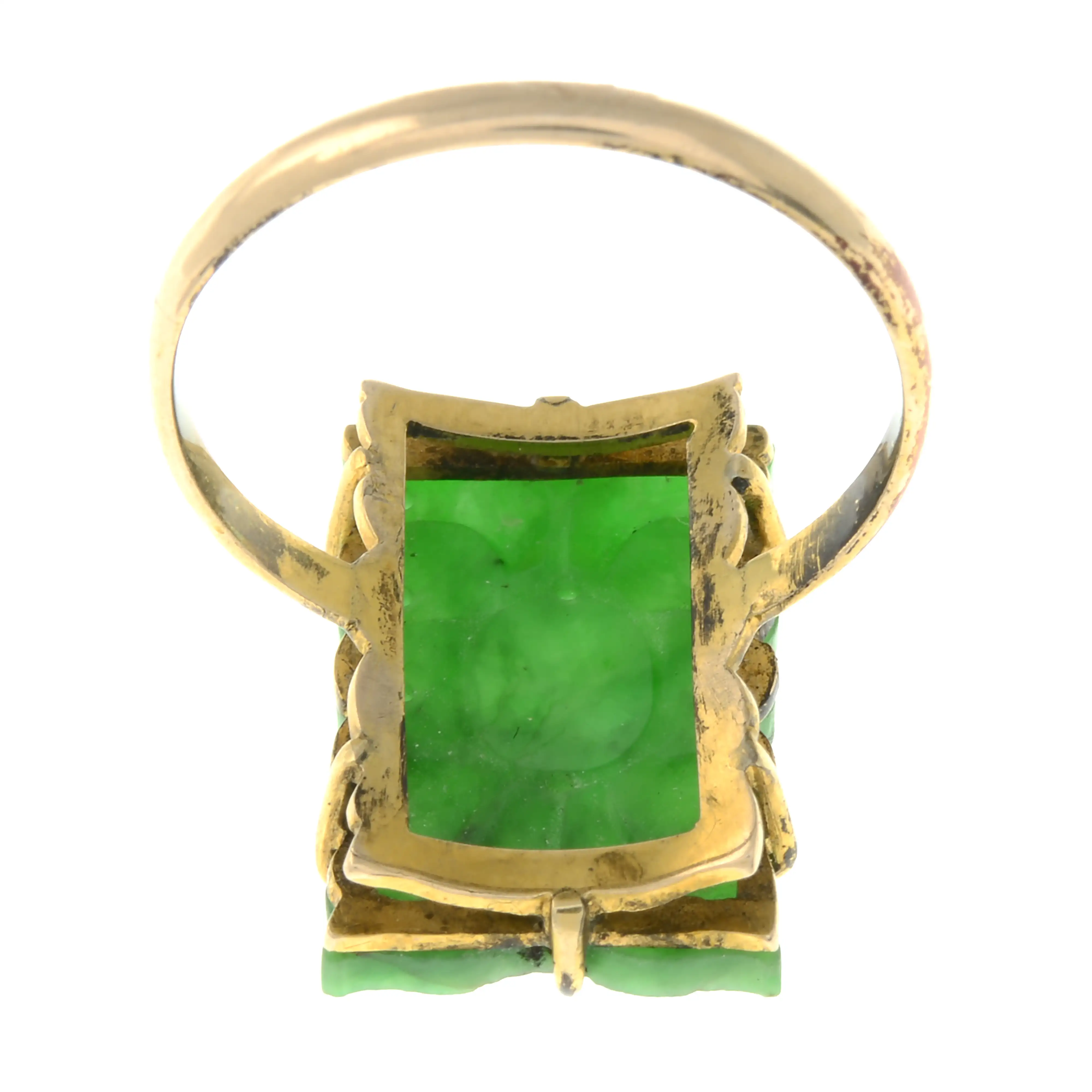 Jade with some minor surface scratches and minor abrasions.