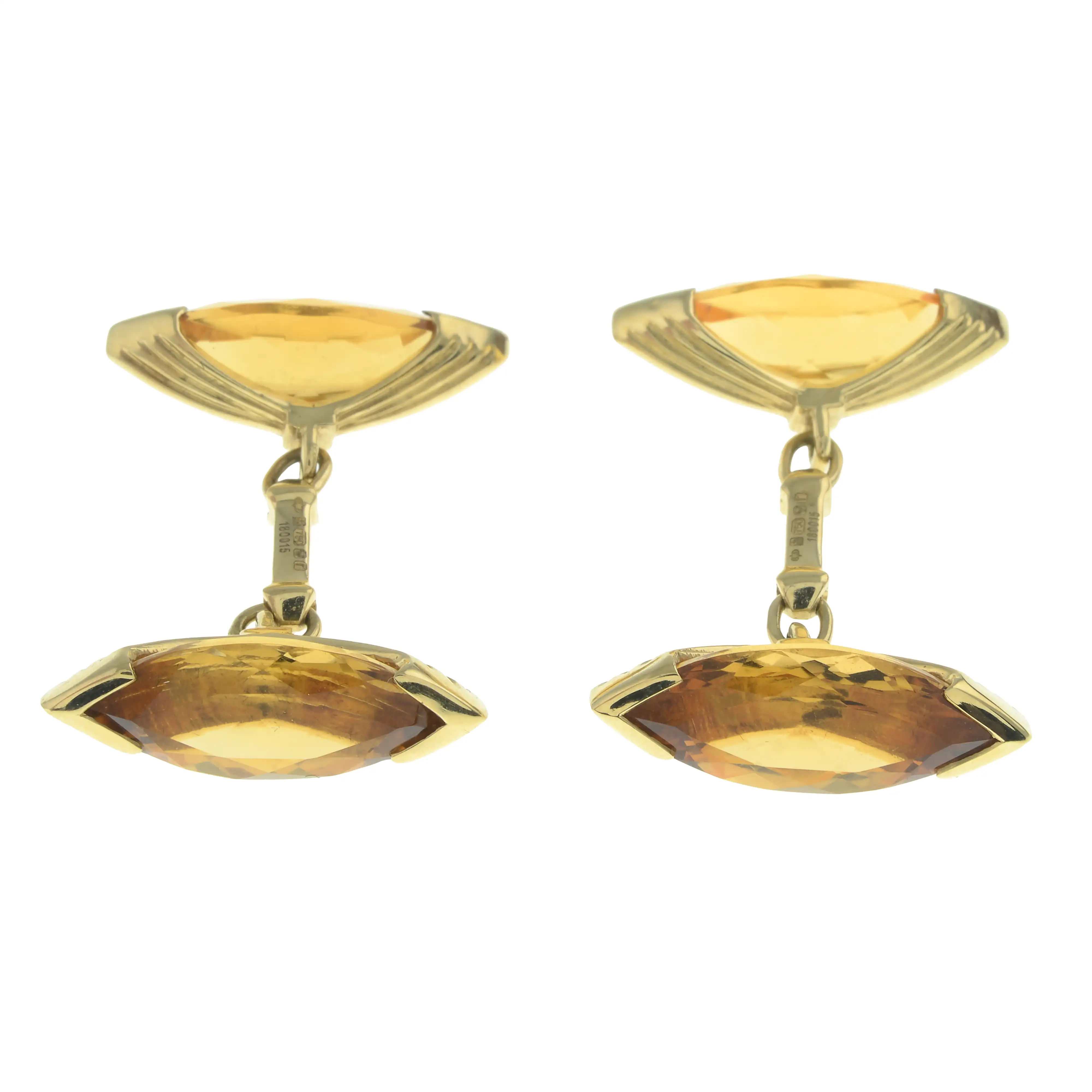 Citrines appear medium orangish-yellow, well saturated, with some minor surface scratches.