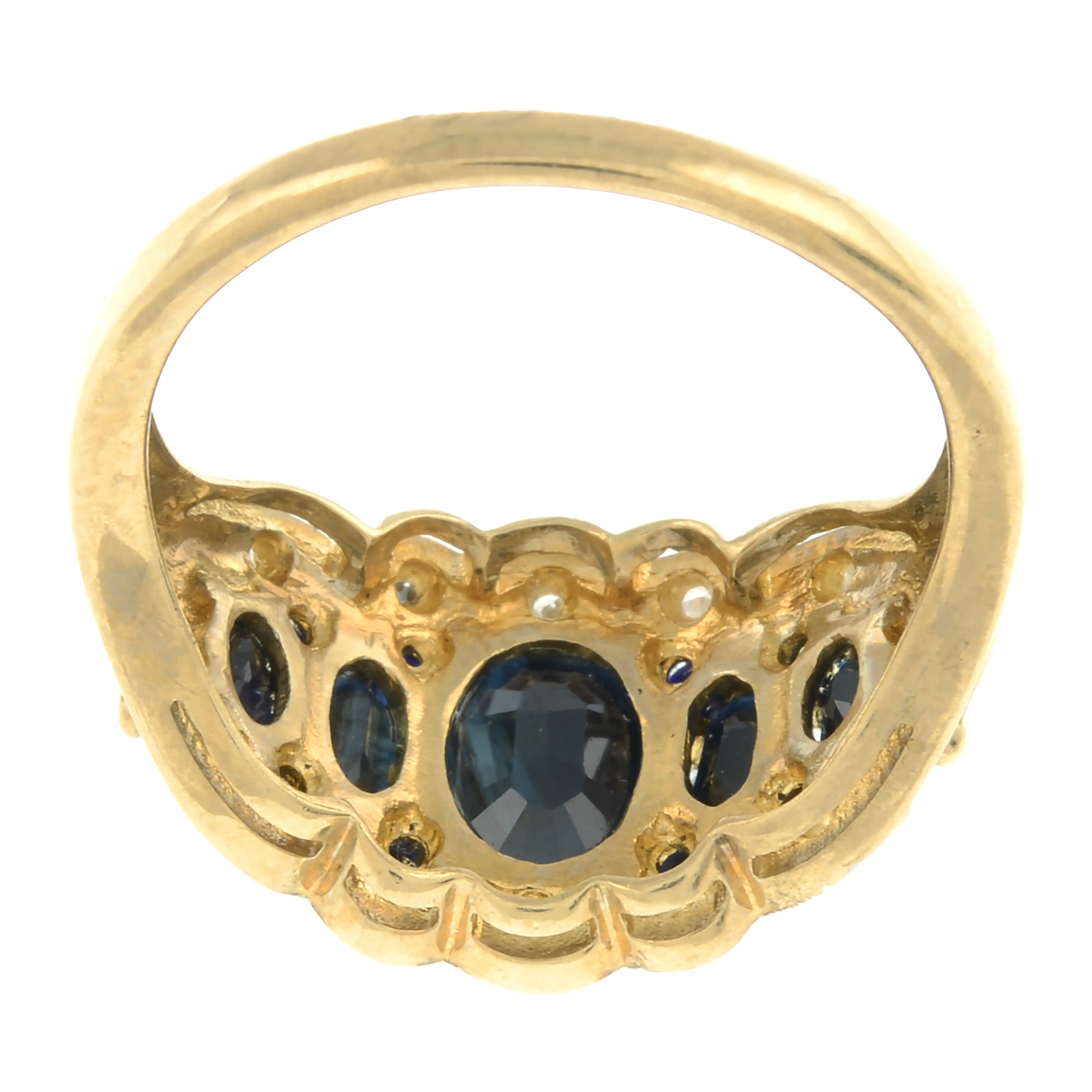 Sapphires appear very dark blue to black, with some minor abrasions to facet edges.