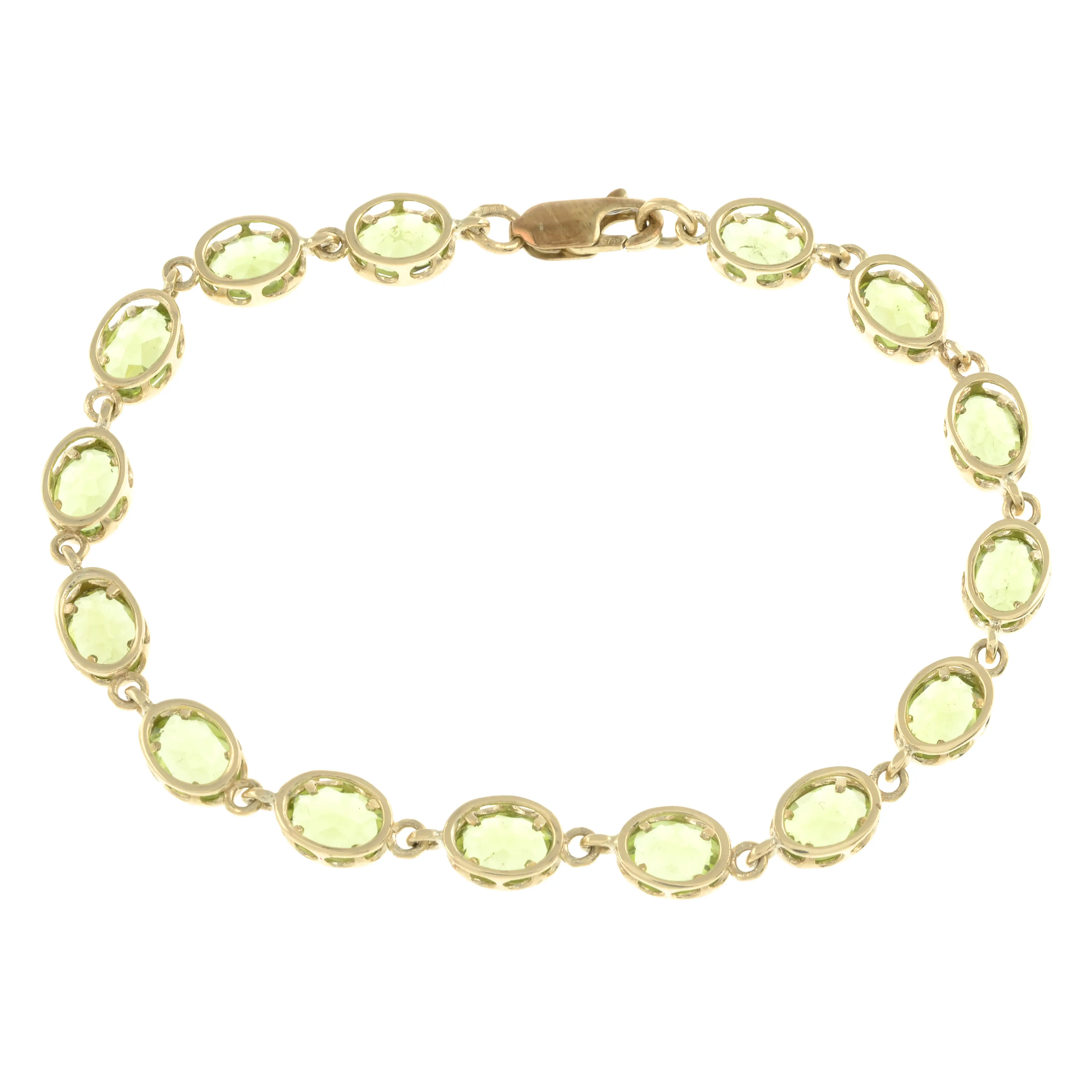 Peridots appear light-medium green, well saturated, with some minor abrasions to facet edges.
