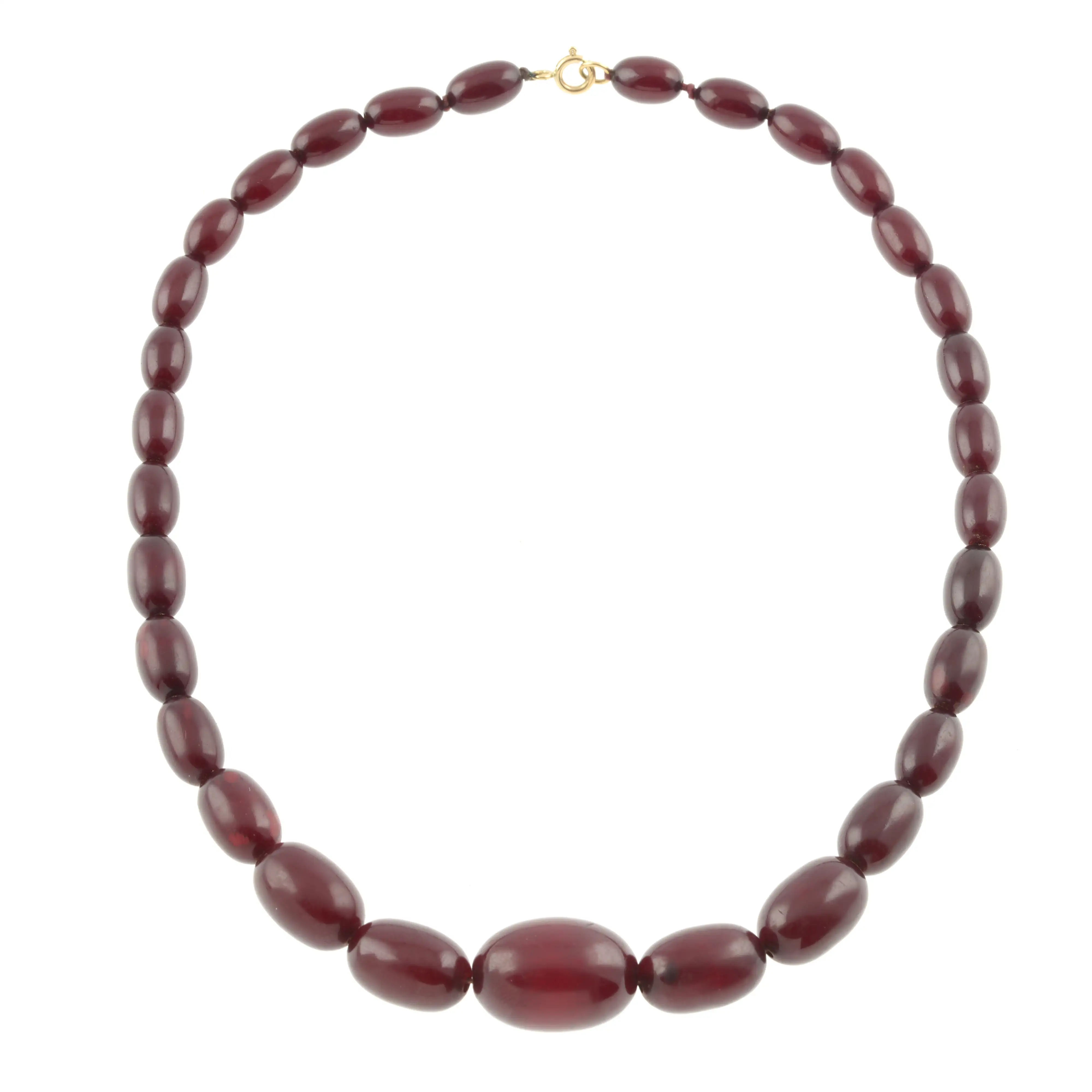 Plastic beads appear brownish-red, with some surface scratches and surface abrasions.