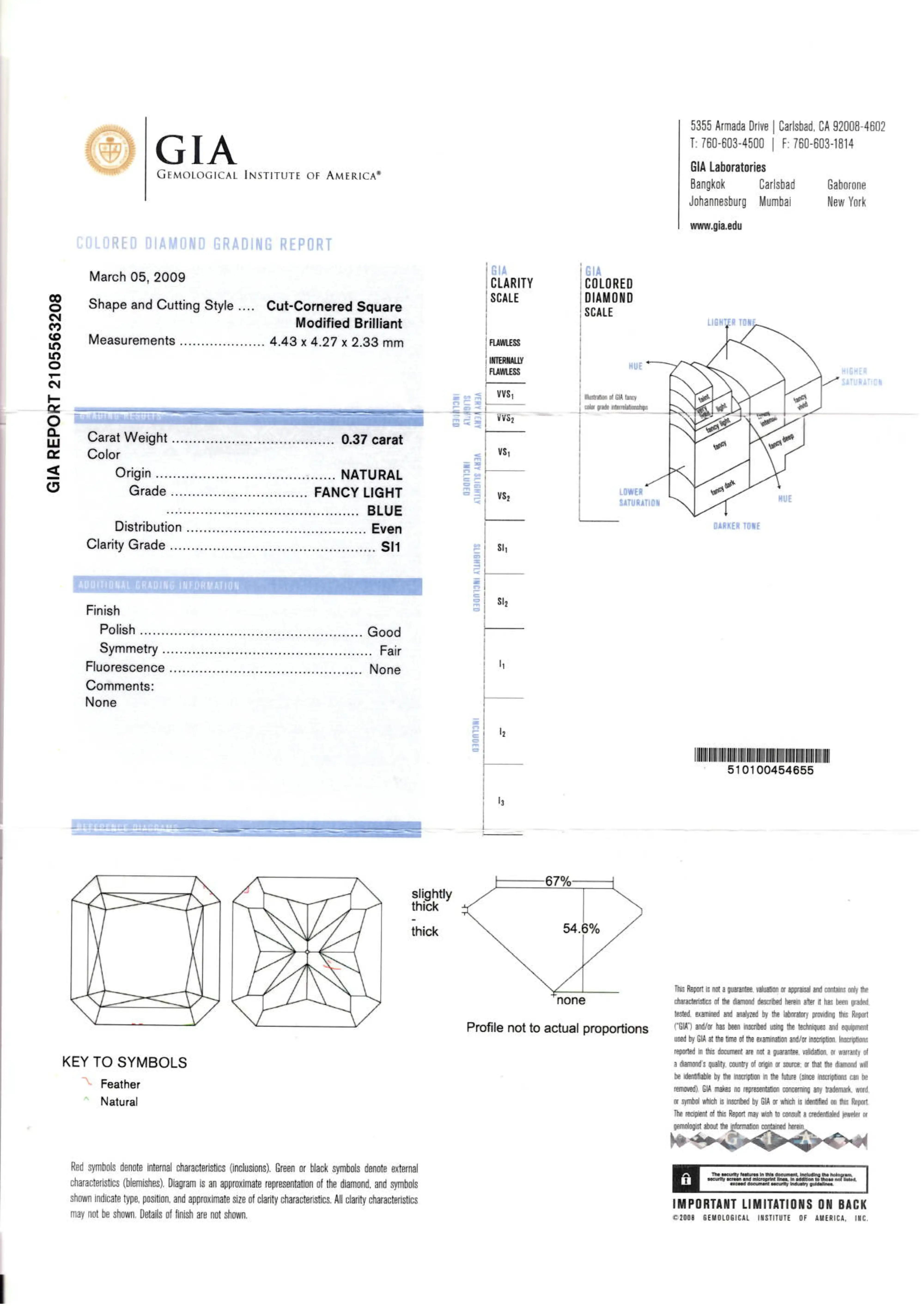 With report 2105563208, dated 5th March 2009, from the GIA, stating weight 0.37ct, natural...