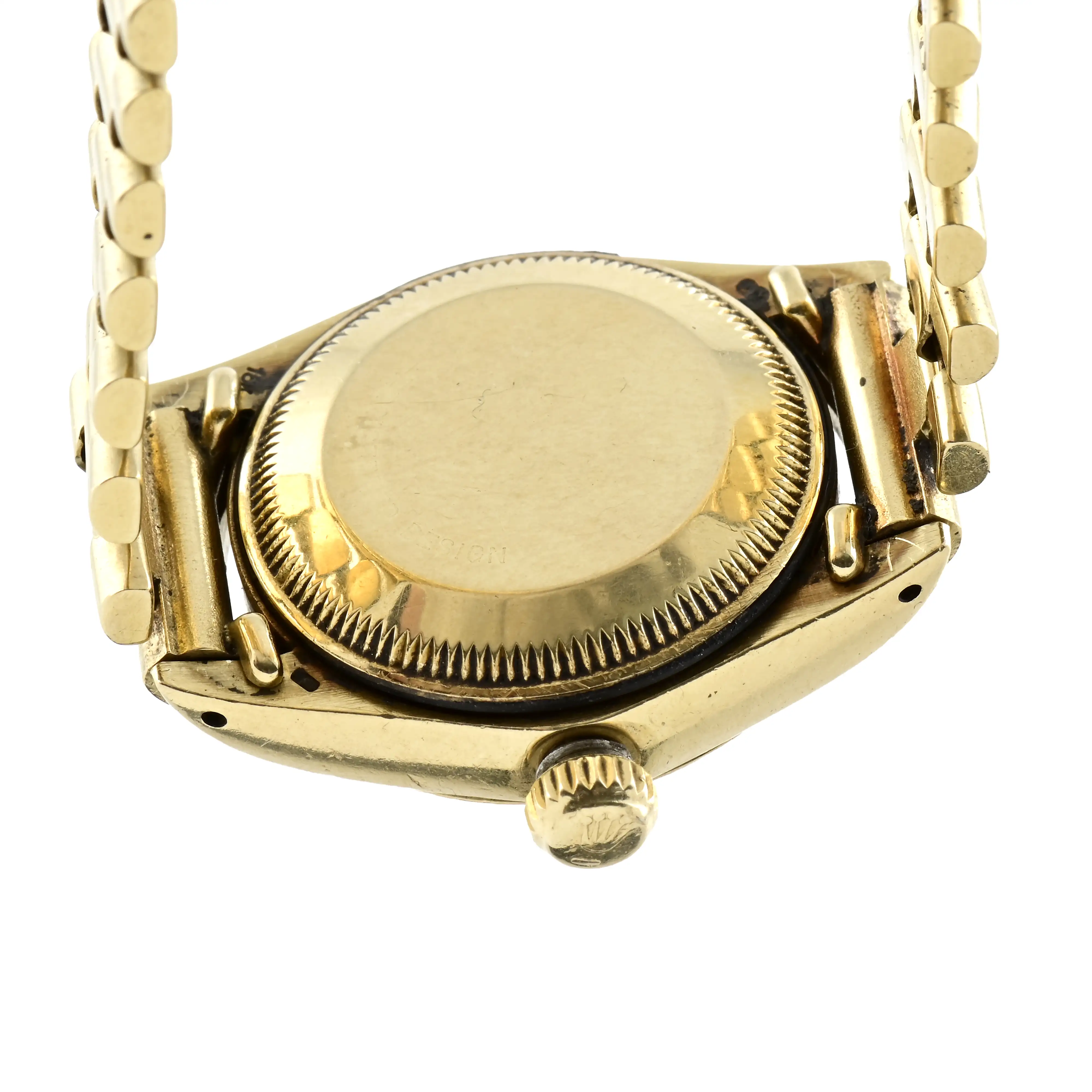 18ct yellow gold case with fluted bezel. Signed automatic calibre 2030. Champagne dial with baton hour markers, date aperture to three. On a signed 18ct yellow gold President bracelet with Crownclasp. 66g